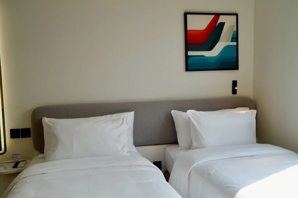 4. GO Plus Twin Room ห้องขนาด 22 ตร.ม. เตียงคู่ขนาด 3.25 ฟุต เพิ่มพื้นที่มุมพักผ่อนเสริม (Extra Area)