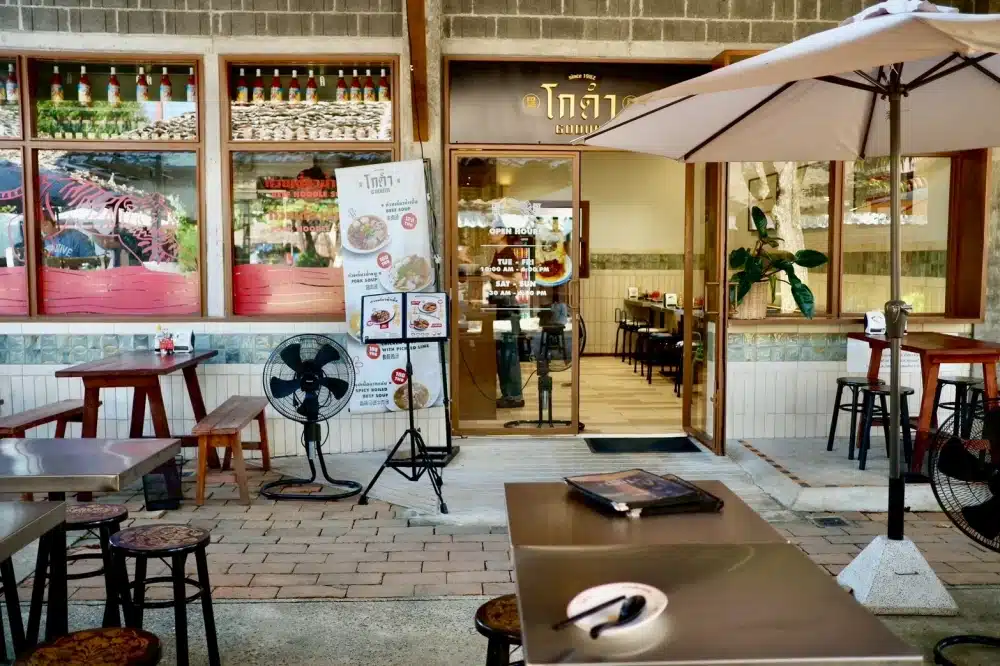 พาลูกเที่ยวเชียงใหม่ พาเด็กเล็ก ๆ ไปเที่ยวตลาดจริงใจได้นะ เพราะบรรยากาศชิลเดินเล่นดูของกินข้าวกันได้เพลิน ๆ แล้วผู้คนก็ไม่พลุกพล่านด้วย ที่นี่มีร้านอาหาร คาเฟ่ ของช้อป ของฝากเพียบ ล่าสุดเราได้ไปลองกินร้านโกดำ ก๋วยเตี๋ยวที่จริงใจ ทำน้ำซุปได้อร่อยมาก น้ำซุปเชงสูตรลับจากครอบครัวสู่ร้านก๋วยเตี๋ยวแห่งนี้ มีทั้งก๋วยเตี๋ยวน้ำเนื้อ น้ำหมู น้ำไก่ และเมนูข้าวต่าง ๆ แต่ละเมนูได้ลองแล้วคืออร่อย ประทับใจมาก ส่วนตัวเราชอบก๋วยเตี๋ยวไก่ของเขามาก แยกน้ำซุปน่องไก่ ออกจากเส้น เป็นการกินที่แปลกใหม่ แล้วน้ำซุปเป็นมะนาวดอง มะระตุ๋น มีทั้งความเปรี้ยวเบา ๆ และขมนิด ๆ รสชาติลงตัวสุด ๆ แต่ถ้าใครสายเนื้อวัว มาไม่มีผิดหวัง เพราะน้ำซุปเนื้อเขาตุ๋นกว่า 6 ชั่วโมง น้ำซุปเข้มข้นกลมกล่อมแบบไม่ต้องปรุงใครชอบเผ็ด ๆ หน่อยมีพริกเผาของเฉพาะทางร้านเติมตามความชอบของตัวเองแค่นี้ก็จบเลย หรือหากใครชอบกินข้าวเขาก็มีเมนูให้เลือกเยอะ เราได้กินข้าวหน้าหมูสามชั้นตุ๋น หมูนุ่มละมุนมาก วางบนข้าวสวยร้อน ๆ ราดด้วยน้ำซอสสูตรเด็ดของเขาอร่อยประทับใจไม่แพ้ก๋วยเตี๋ยวเลย