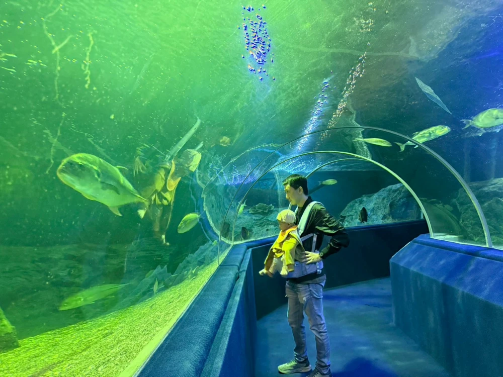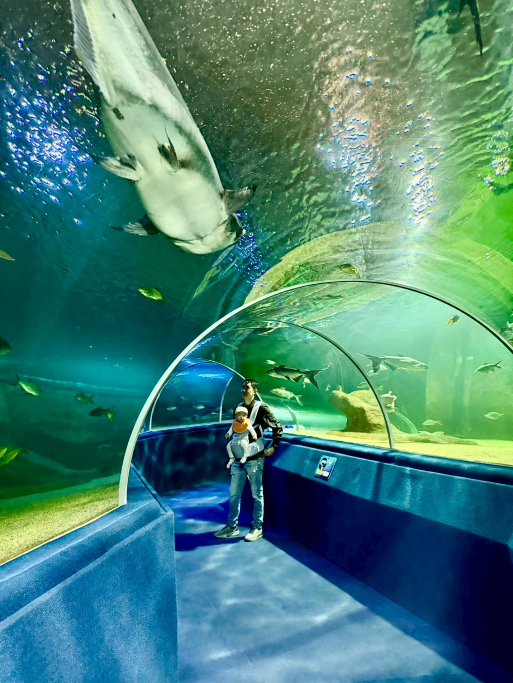 เป้าหมายในการมาเที่ยวเชียงใหม่แบบครอบครัว มีเด็กเล็กมาด้วยคือ เชียงใหม่ ซู อควาเรียม อยากพาเจ้าเด็กวัย 4 เดือน มาเที่ยวดูสัตว์น้ำ เลยจัดทริปไว้วันสุดท้าย เที่ยวตั้งแต่สวนสัตว์เปิด เที่ยวให้เพลินให้จุใจ ไม่มีอะไรมาขั้นหรือต้องรีบ ๆ เที่ยวเพื่อไปอีกที่นึงต่อ ที่เชียงใหม่ ซู อควาเรียม ถือได้ว่าเป็นพิพิธภัณฑ์สัตว์น้ำที่ใหญ่เป็นอันดับต้น ๆ ของอาเซียนเลย รวบรวมปลาไว้หลากหลายสายพันธุ์ทั้งน้ำจืดและน้ำทะเล ไฮไลต์คือ อุโมงค์ใต้น้ำ ที่เดินลอดผ่านฝูงปลาแบบใกล้ชิดสุด ๆ ซึ่งเจ้าเด็กมาวิณ ในวัย 4 เดือน ชอบมาก เห็นปลา เล็ก ใหญ่ สีสันสวยงาม ก็ตื่นตาตื่นใจ ดิ้นดีใจ และส่งเสียงร้องชอบใจซึ่งเป็นการตัดสินใจที่ถูกต้องแล้ว การได้พาลูกเที่ยวตอนเล็ก ๆ พาเขาไปดูโลกกว้างที่หลากหลาย เพื่อพัฒนาการที่ดีของลูกด้วย มีคนเคยบอกว่า พาลูกเที่ยวตอนเด็กเขาจะไปจำอะไรได้ ถึงเขาจำไม่ได้ แต่เราพ่อแม่จำได้ว่าทริปเชียงใหม่ครั้งนี้มีมาวิณมาเที่ยวด้วยครั้งแรกมันเป็นความรู้สึกที่ดีและสนุกมากแค่ไหน หากไม่มีลูกเอาจริง ๆ ก็คงไม่ได้เข้ามาเที่ยว อควาเรียม แบบนี้หรอก การได้พาลูกเที่ยวตั้งแต่เด็กไม่เพียงเติมประสบการณ์ให้เขาแต่ยังเพิ่มความทรงจำให้กับพ่อแม่อย่างเรา ๆ อีกด้วย ไปกันค่ะ พาลูกเที่ยวกัน