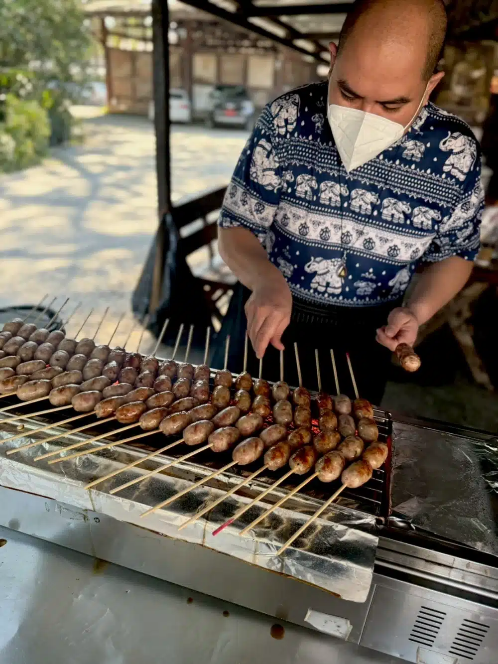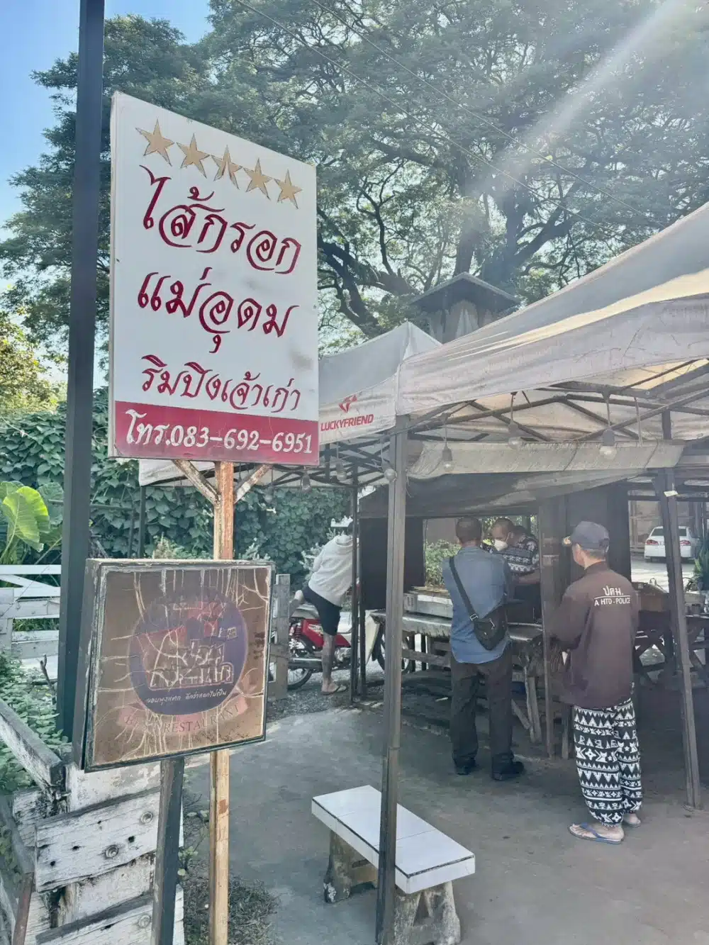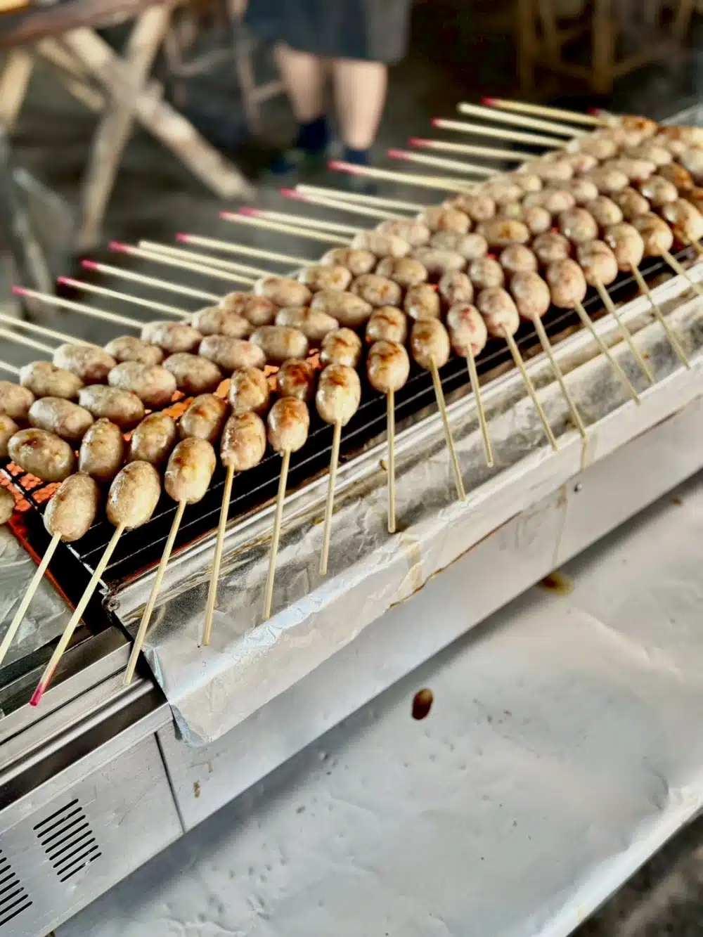 ร้านข้าง ๆ สุขพอดี คือ “ร้านไส้กรอกแม่อุดม” อย่าพลาดเดินไปซื้อมานั่งกินที่ร้านกาแฟได้ อร่อยไม่ธรรมดาปิ้งร้อนๆ กลิ่นหอมมาก ไม้ละ 18 บาท แต่ก็ใหญ่อยู่นะ มีให้เลือก 2 แบบ คือหมูล้วน กับ หมูวุ้นเส้น ส่วนตัวเมกับต้อมชอบ หมูล้วน ปล.ถ้าใครชอบอยากซื้อกลับมากรุงเทพฯ ก็มีเป็นแพ็คขายเอาขึ้นเครื่องได้เลย