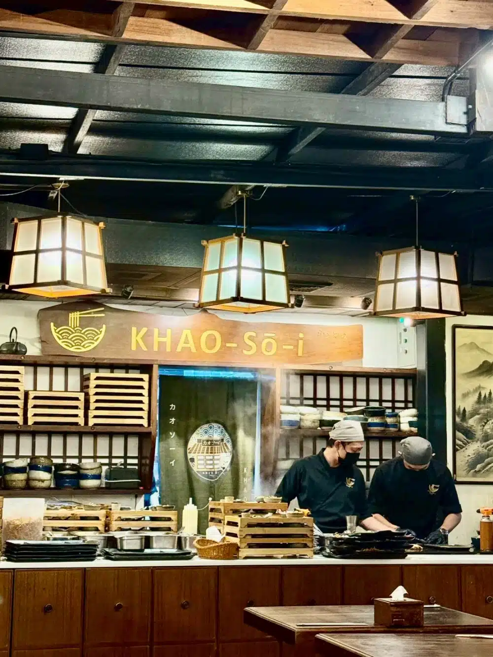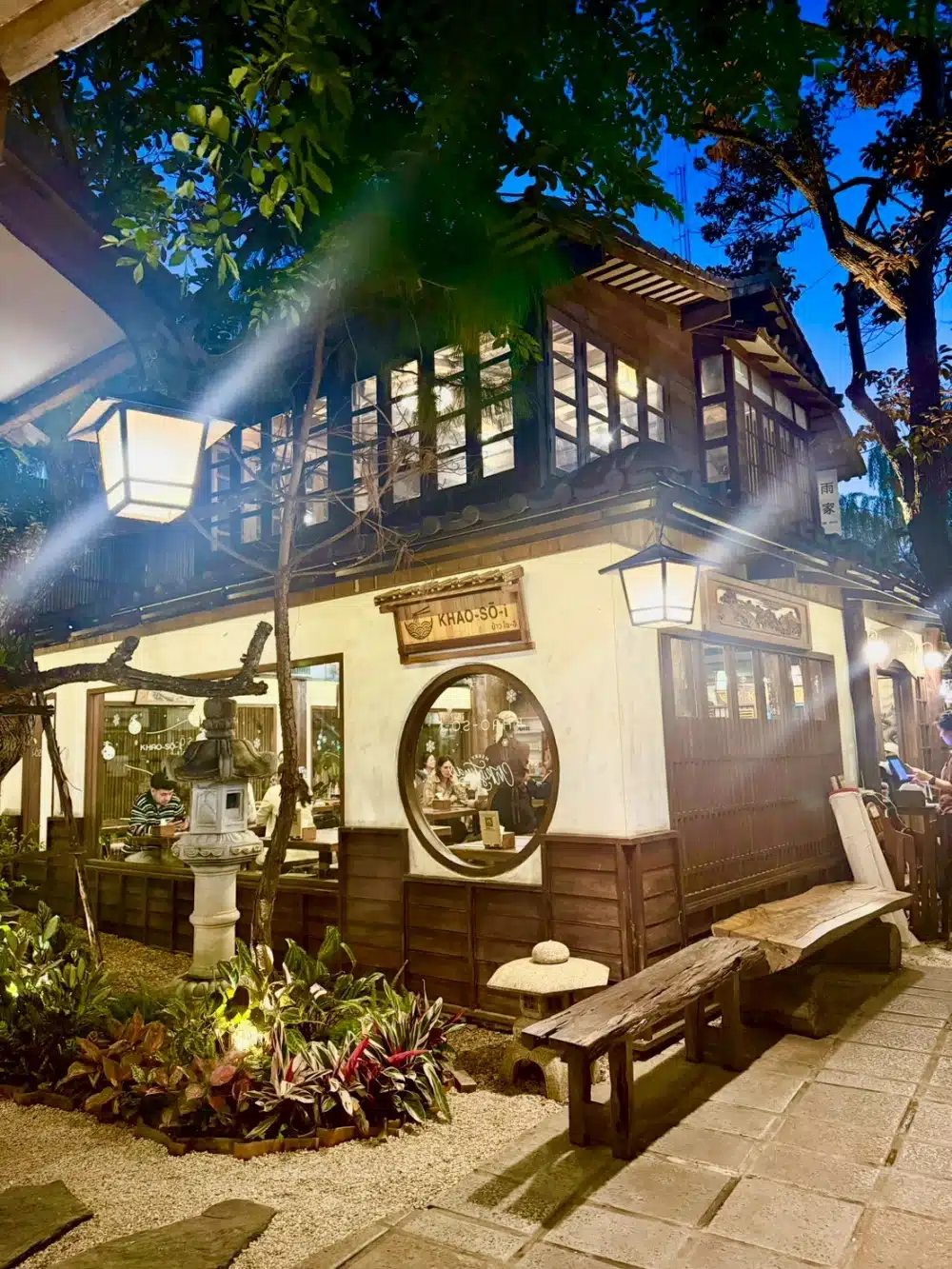 ร้านอาหารมื้อแรกเมื่อมาถึงเชียงใหม่ “Khao-So-i” ข้าวโซอิ ใกล้กับที่พักเชียงใหม่ที่เราเข้าพ้กเลย จริง ๆ ร้านนี้เห็นที่กรุงเทพฯ มีหลายสาขาเหมือนกันนะ แต่ยังไม่มีโอกาสได้กิน แต่พอมาเชียงใหม่ ใกล้ที่พักเลยไม่คิดเยอะ บรรยากาศร้านญี่ปุ่นมาก มีความผสมผสานความเป็นล้านนาบ่งบอกความเป็นเมืองเหนือเบา ๆ แต่เหนือสิ่งอื่นใดอาหารอร่อย รสชาติเซอร์ไพรส์สุด ๆ ข้าวซอยเส้นสดไก่โซอิ เข้มข้นมีเครื่องเคียงให้เติมกันได้ตลอดซึ่งรสชาติข้าวซอยในแบบฟิวชั่นแบบญี่ปุ่นเลย หรือจะเป็นข้าวซอยผัดแห้งไก่โซอิก็ดีมาก ส่วนตัวชอบผักกาดดองของเขาไม่เปรี้ยวเกินไปกินได้เรื่อย ๆ กับข้าวซอยอร่อยดี นอกจากเมนูหลักแล้ว พวกเมนูกินเล่นก็อร่อยไม่ใช่เล่น ๆ นะ อย่าง เต้าหู้ทอด เกี๊ยวนึ่งโซอิซอส หรือเมนูข้าวก็โอเคอย่างข้าวผัดกากหมู เสิร์ฟมาพร้อมไส้อั่วย่างรสชาติดีสุด ๆ