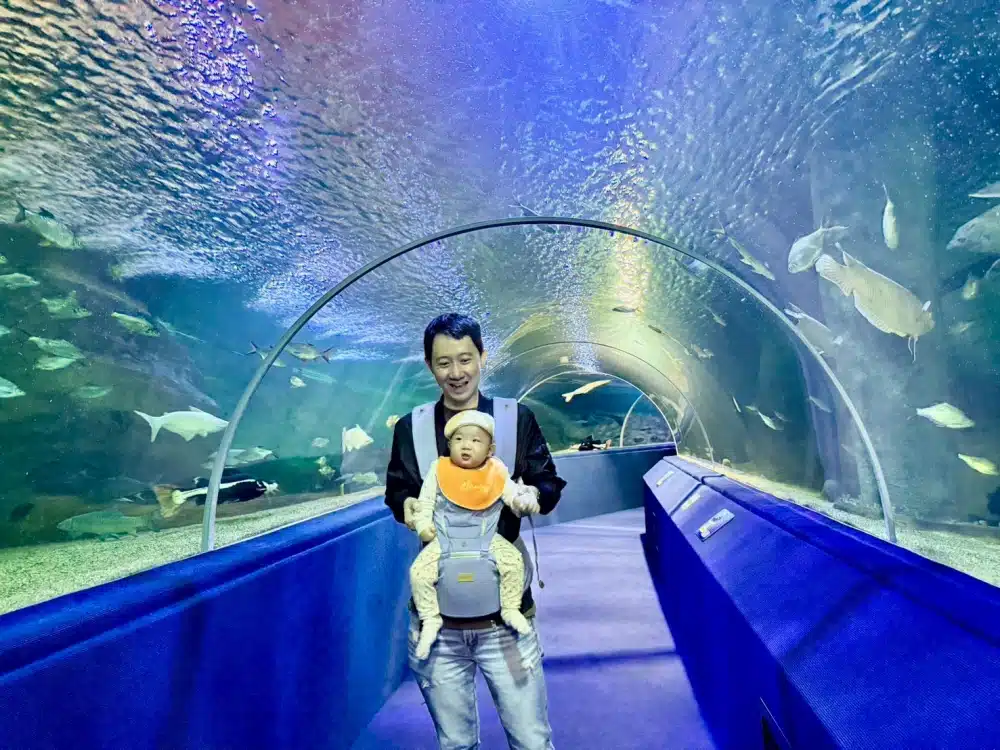 เป้าหมายในการมาเที่ยวเชียงใหม่แบบครอบครัว มีเด็กเล็กมาด้วยคือ เชียงใหม่ ซู อควาเรียม อยากพาเจ้าเด็กวัย 4 เดือน มาเที่ยวดูสัตว์น้ำ เลยจัดทริปไว้วันสุดท้าย เที่ยวตั้งแต่สวนสัตว์เปิด เที่ยวให้เพลินให้จุใจ ไม่มีอะไรมาขั้นหรือต้องรีบ ๆ เที่ยวเพื่อไปอีกที่นึงต่อ ที่เชียงใหม่ ซู อควาเรียม ถือได้ว่าเป็นพิพิธภัณฑ์สัตว์น้ำที่ใหญ่เป็นอันดับต้น ๆ ของอาเซียนเลย รวบรวมปลาไว้หลากหลายสายพันธุ์ทั้งน้ำจืดและน้ำทะเล ไฮไลต์คือ อุโมงค์ใต้น้ำ ที่เดินลอดผ่านฝูงปลาแบบใกล้ชิดสุด ๆ ซึ่งเจ้าเด็กมาวิณ ในวัย 4 เดือน ชอบมาก เห็นปลา เล็ก ใหญ่ สีสันสวยงาม ก็ตื่นตาตื่นใจ ดิ้นดีใจ และส่งเสียงร้องชอบใจซึ่งเป็นการตัดสินใจที่ถูกต้องแล้ว การได้พาลูกเที่ยวตอนเล็ก ๆ พาเขาไปดูโลกกว้างที่หลากหลาย เพื่อพัฒนาการที่ดีของลูกด้วย มีคนเคยบอกว่า พาลูกเที่ยวตอนเด็กเขาจะไปจำอะไรได้ ถึงเขาจำไม่ได้ แต่เราพ่อแม่จำได้ว่าทริปเชียงใหม่ครั้งนี้มีมาวิณมาเที่ยวด้วยครั้งแรกมันเป็นความรู้สึกที่ดีและสนุกมากแค่ไหน หากไม่มีลูกเอาจริง ๆ ก็คงไม่ได้เข้ามาเที่ยว อควาเรียม แบบนี้หรอก การได้พาลูกเที่ยวตั้งแต่เด็กไม่เพียงเติมประสบการณ์ให้เขาแต่ยังเพิ่มความทรงจำให้กับพ่อแม่อย่างเรา ๆ อีกด้วย ไปกันค่ะ พาลูกเที่ยวกัน